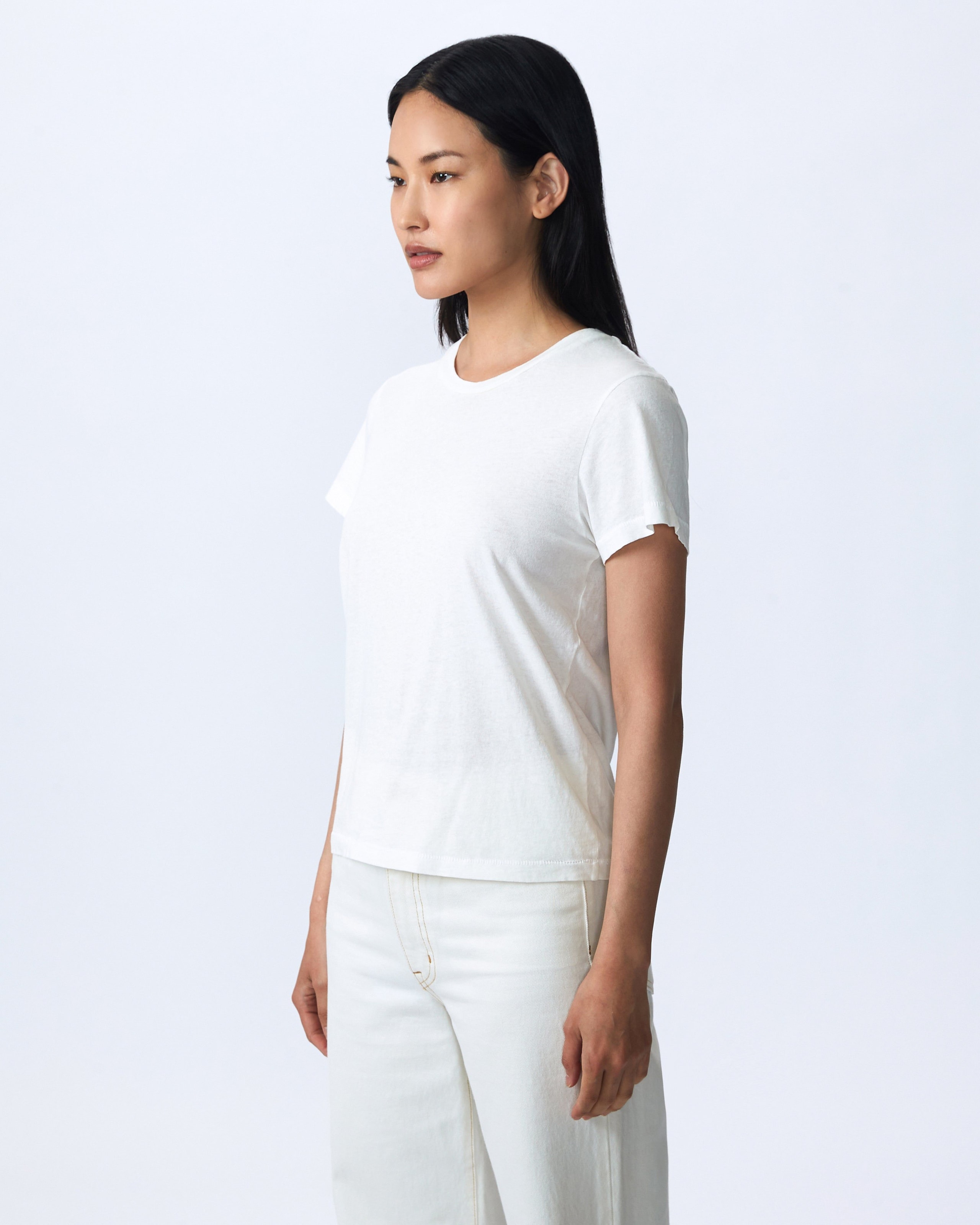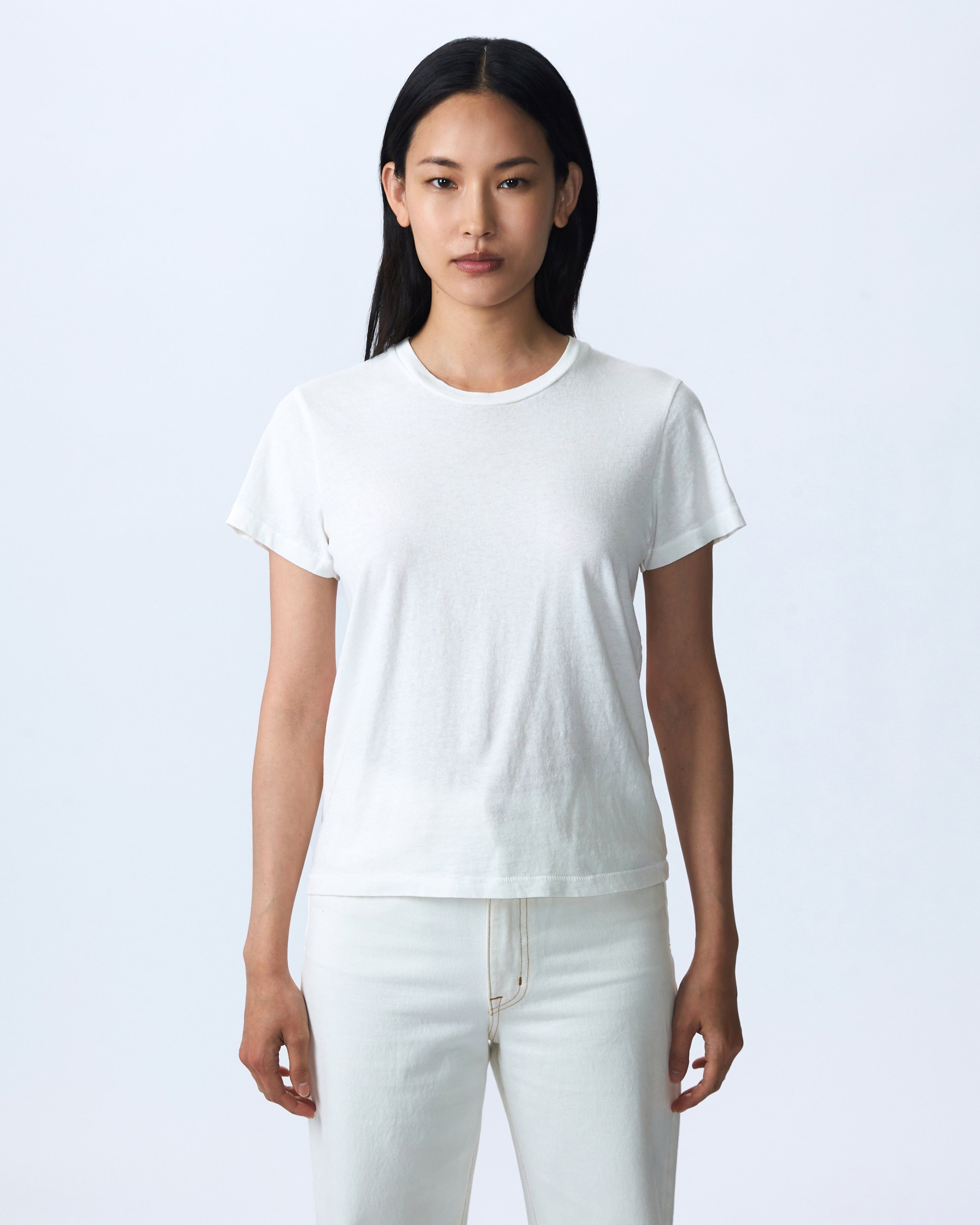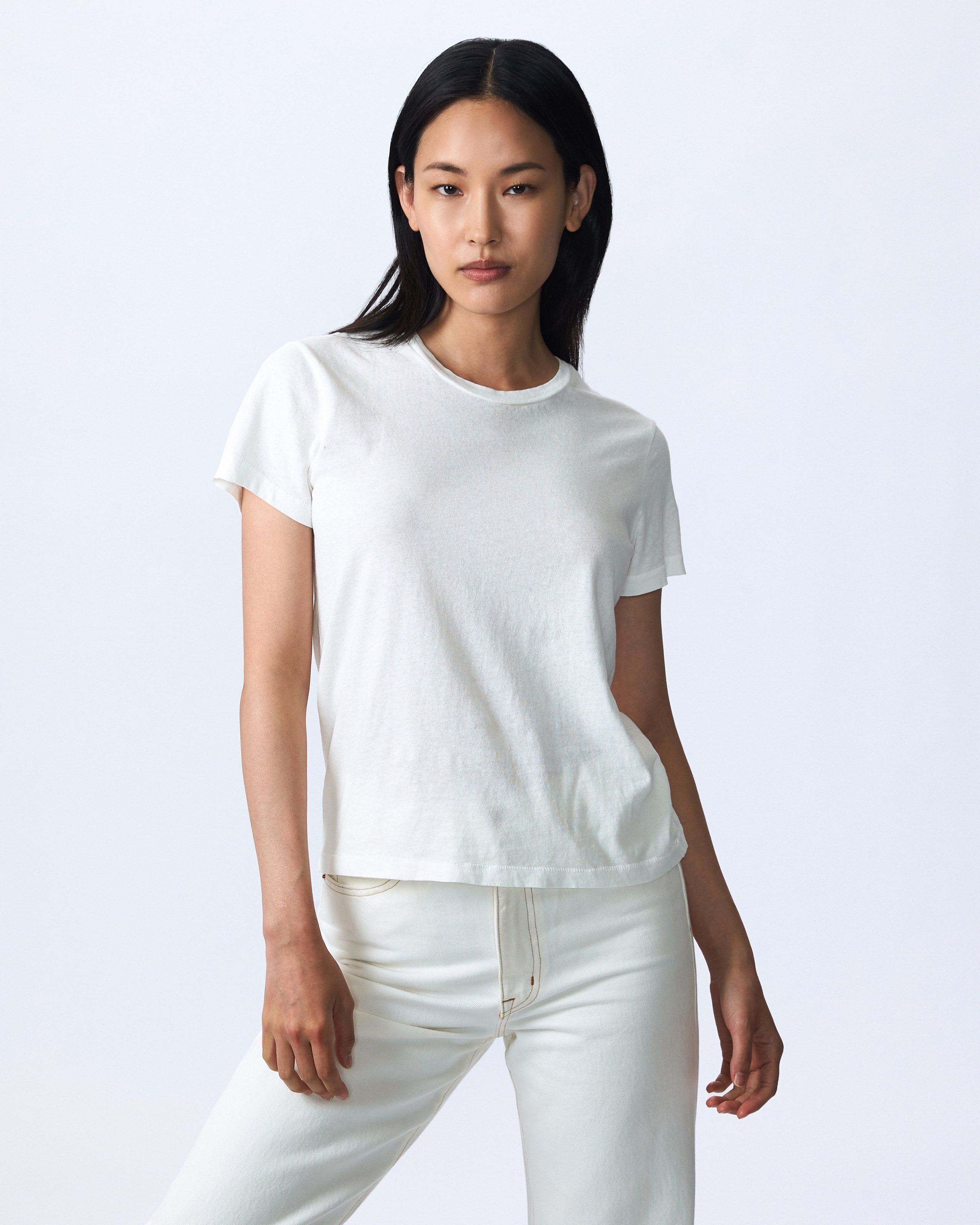 Crafted from a unique light weight open-end fabric for an authentic vintage look and feel. Designed for a straight fit that is borrowed from the boys.