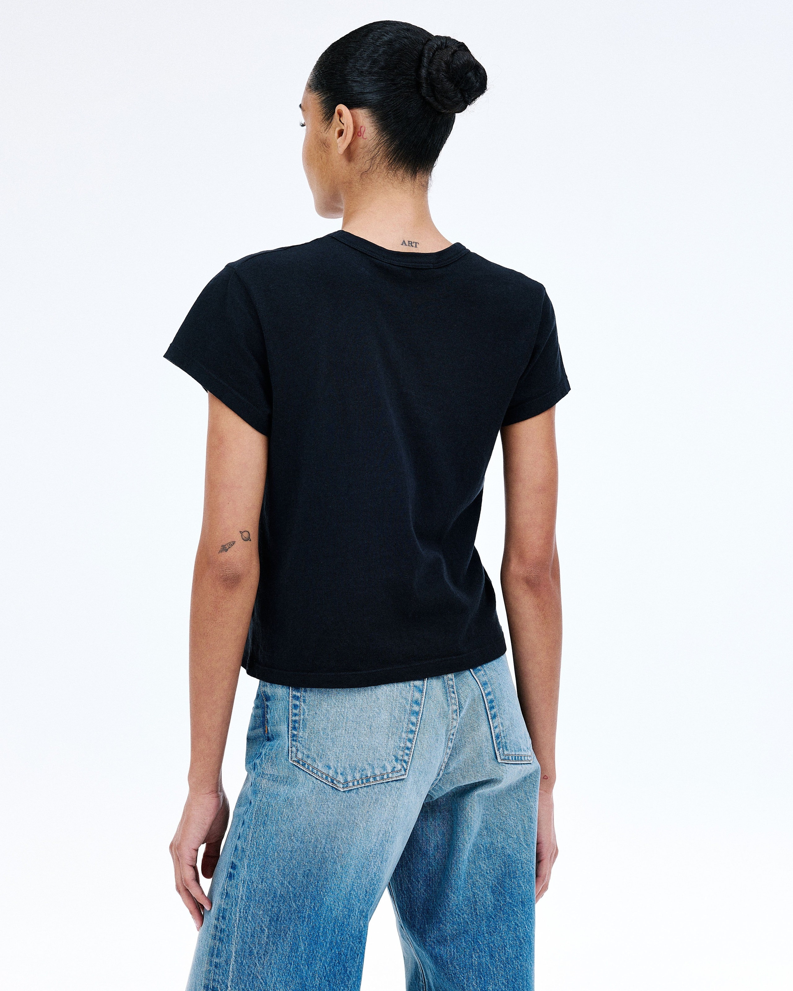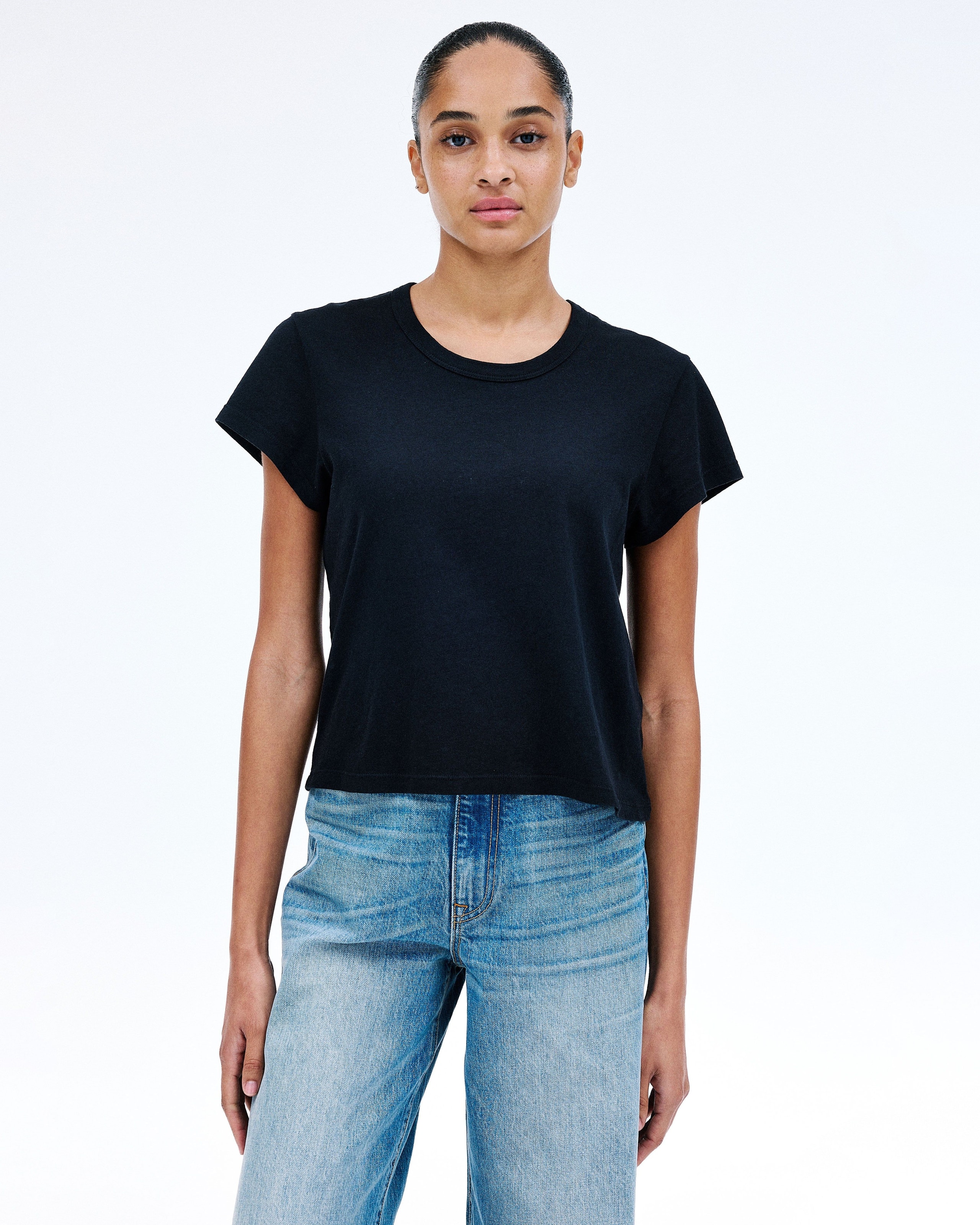 Crafted from a mid weight open-end fabric for an authentic vintage look and feel. This modern silhouette features a cap sleeve.