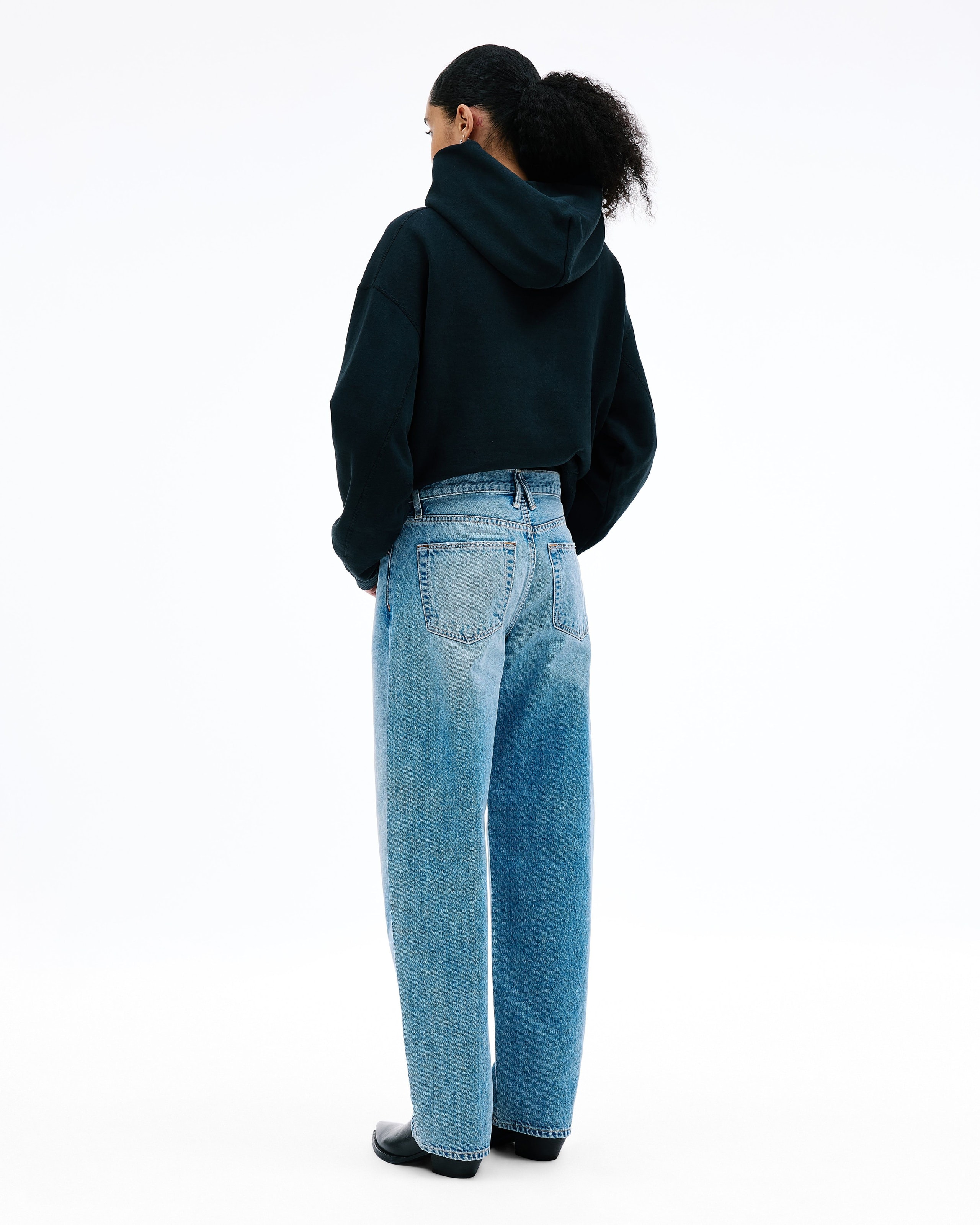 Ella features a relaxed body and curved leg with a mid-rise waist, offering an effortless yet refined fit.