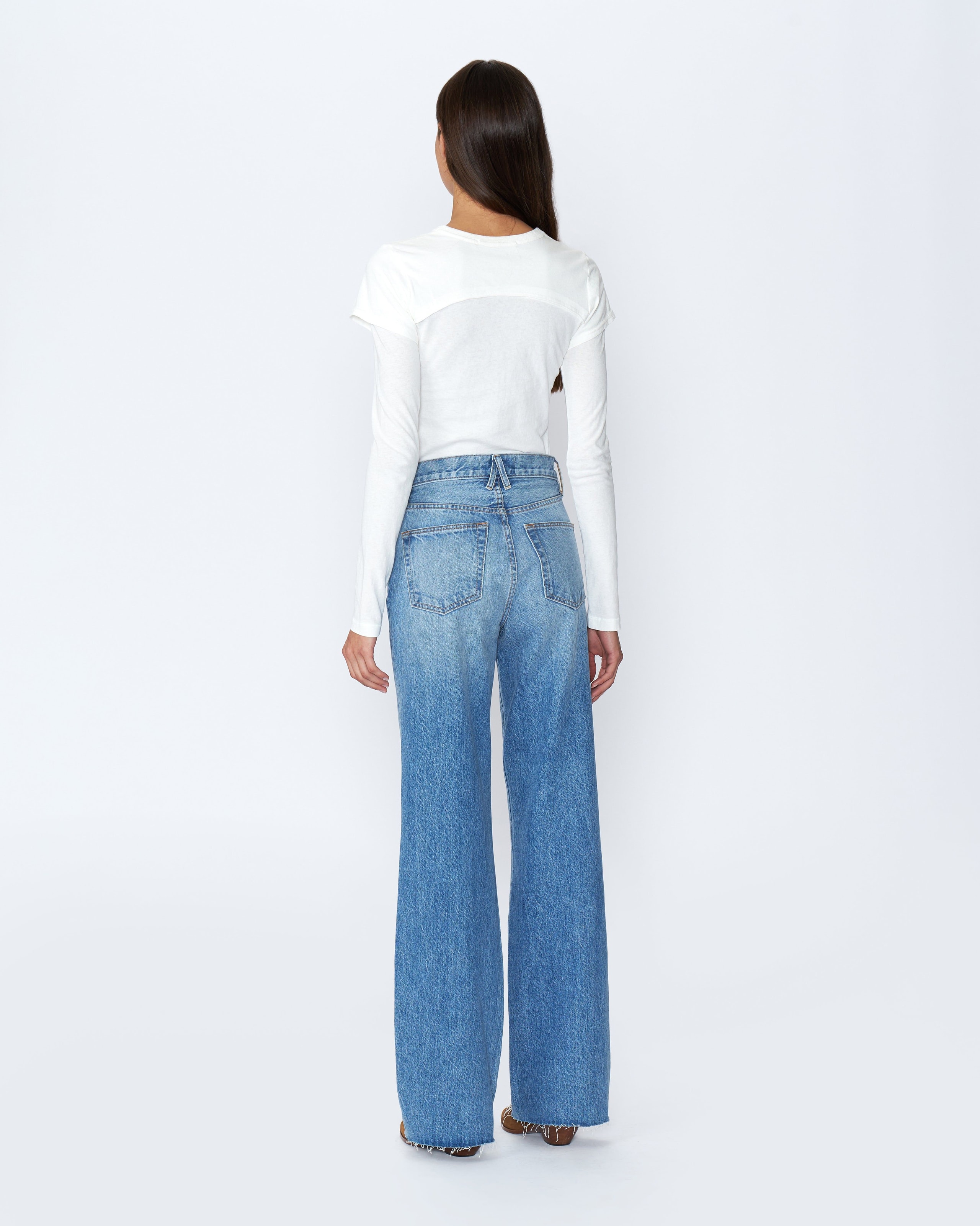 Grace is a SLVRLAKE signature style designed to elongate the leg. Featuring a high-rise waist and wide-leg silhouette, it fits close through the waist and hip before flowing through the leg, finished with a raw hem. An essential style offering versatile styling options.