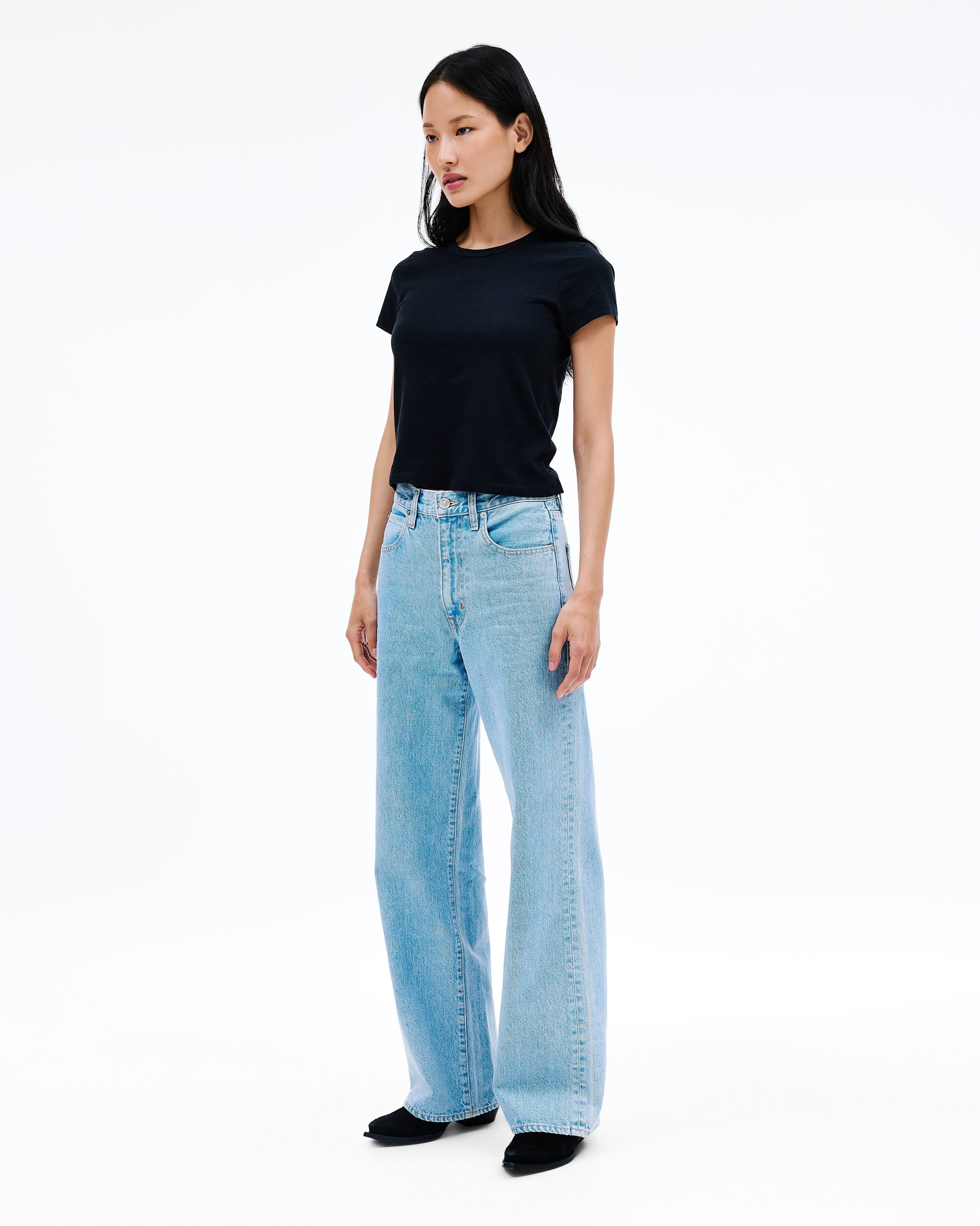 Grace is a SLVRLAKE signature style designed to elongate the leg. Featuring a high-rise waist and wide-leg silhouette, it fits close through the waist and hip before flowing through the leg, finished with a raw hem. An essential style offering versatile styling options.