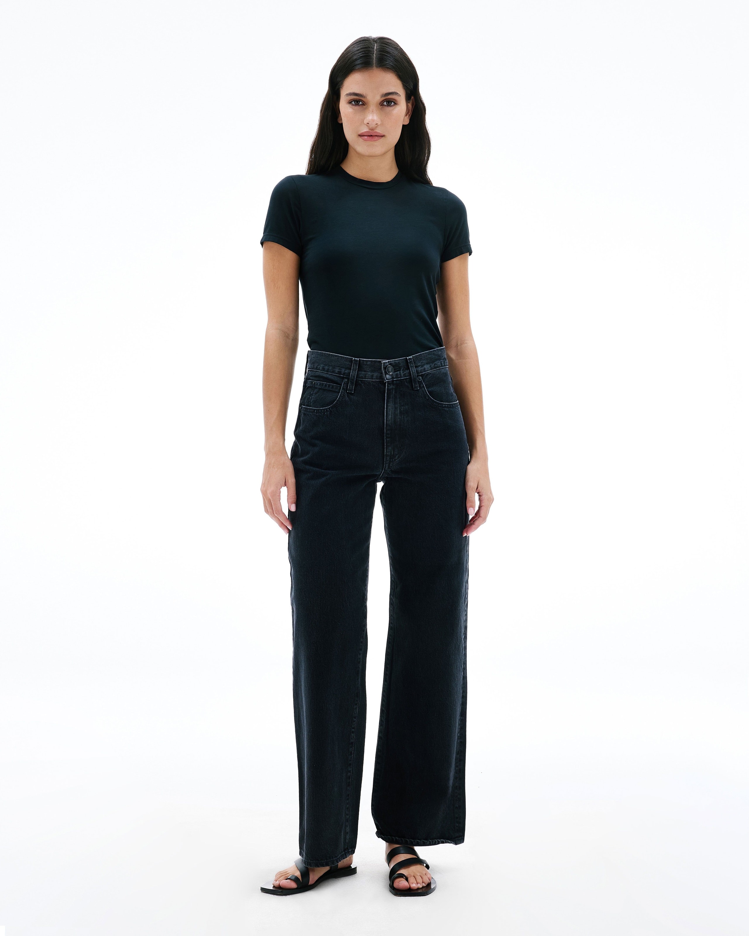 Grace is a SLVRLAKE signature style designed to elongate the leg. Featuring a high-rise waist and wide-leg silhouette, it fits close through the waist and hip before flowing through the leg, finished with a raw hem. An essential style offering versatile styling options.