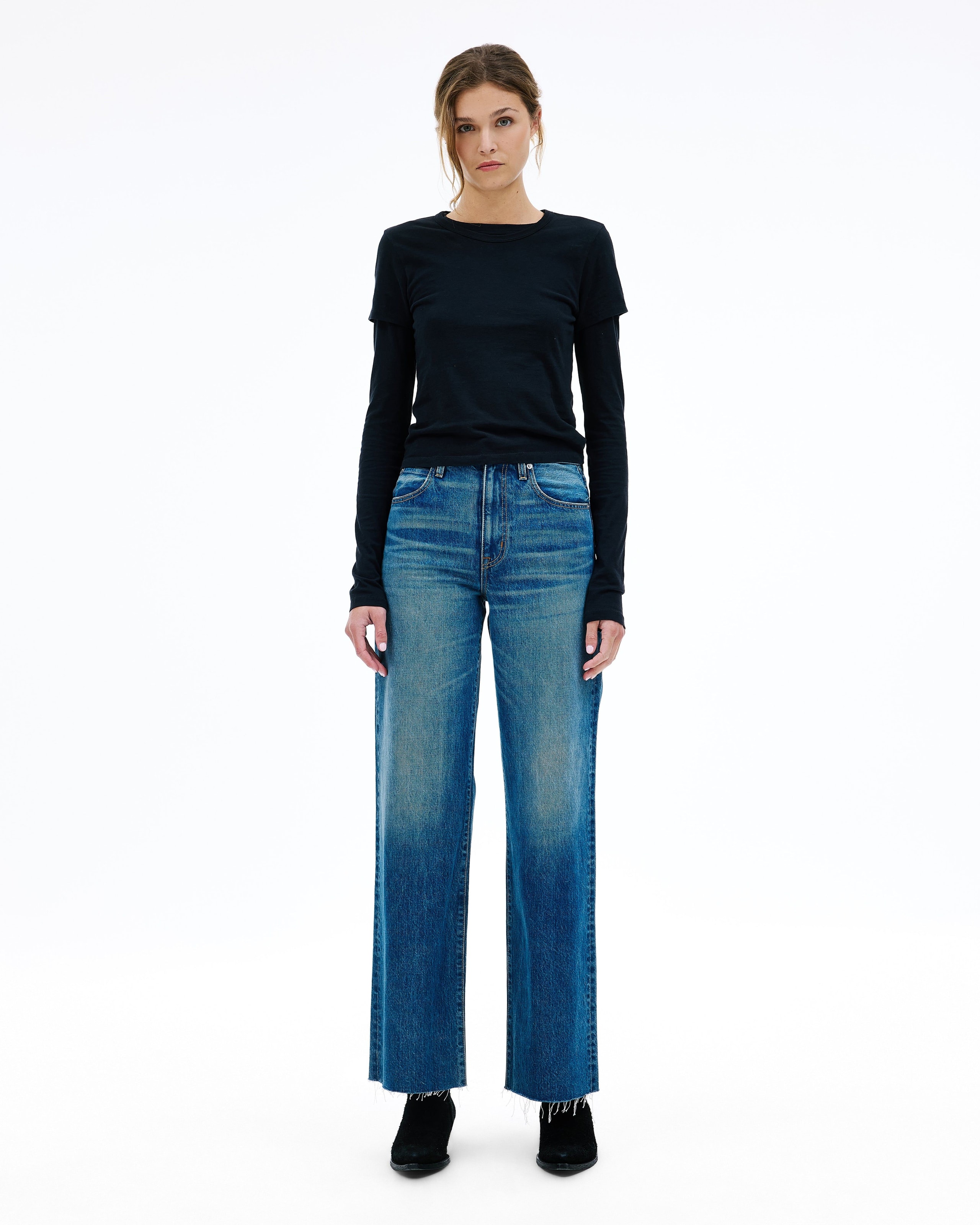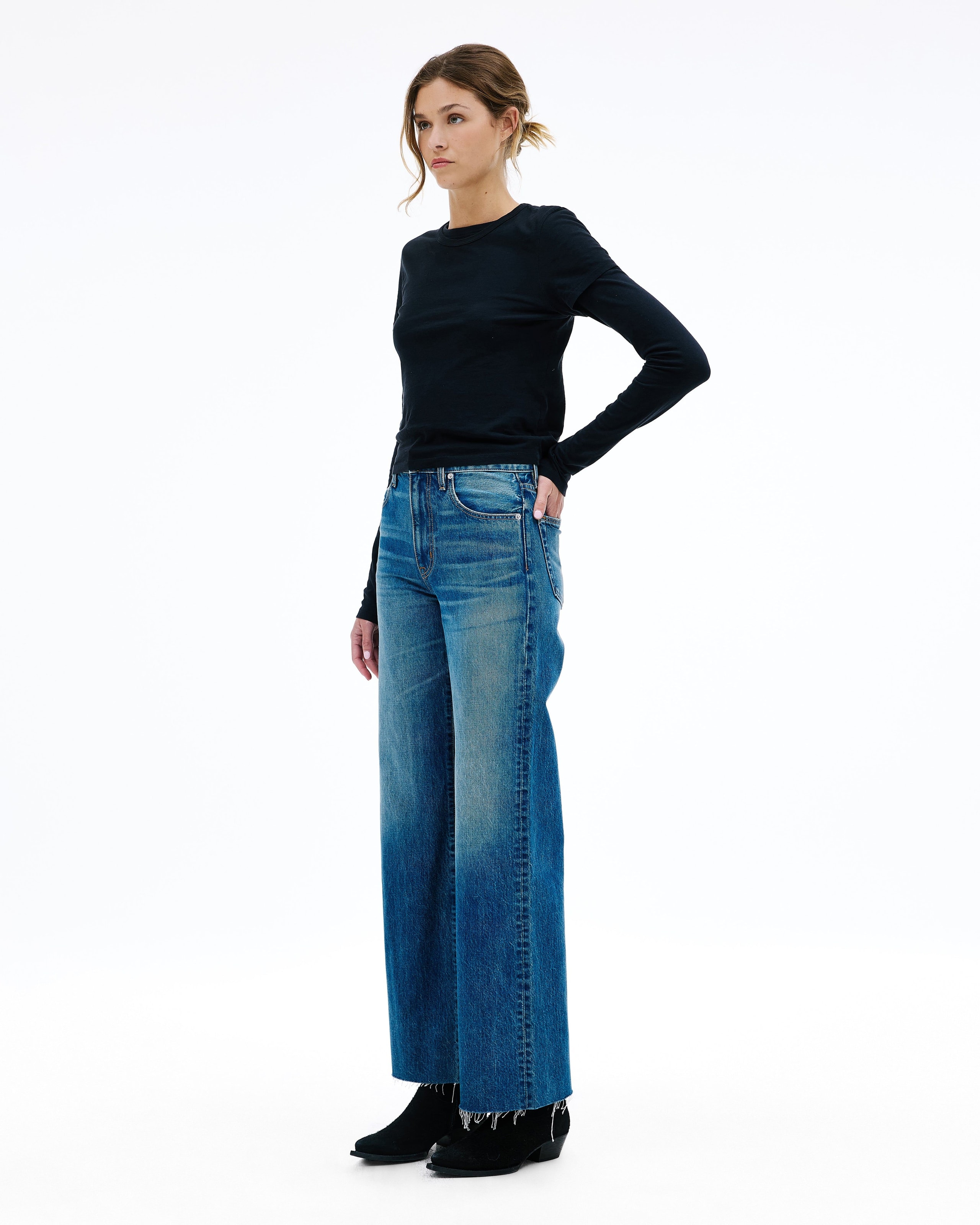 Grace is a signature style designed to elongate the leg with a high-rise waist and a playful wide-leg silhouette.