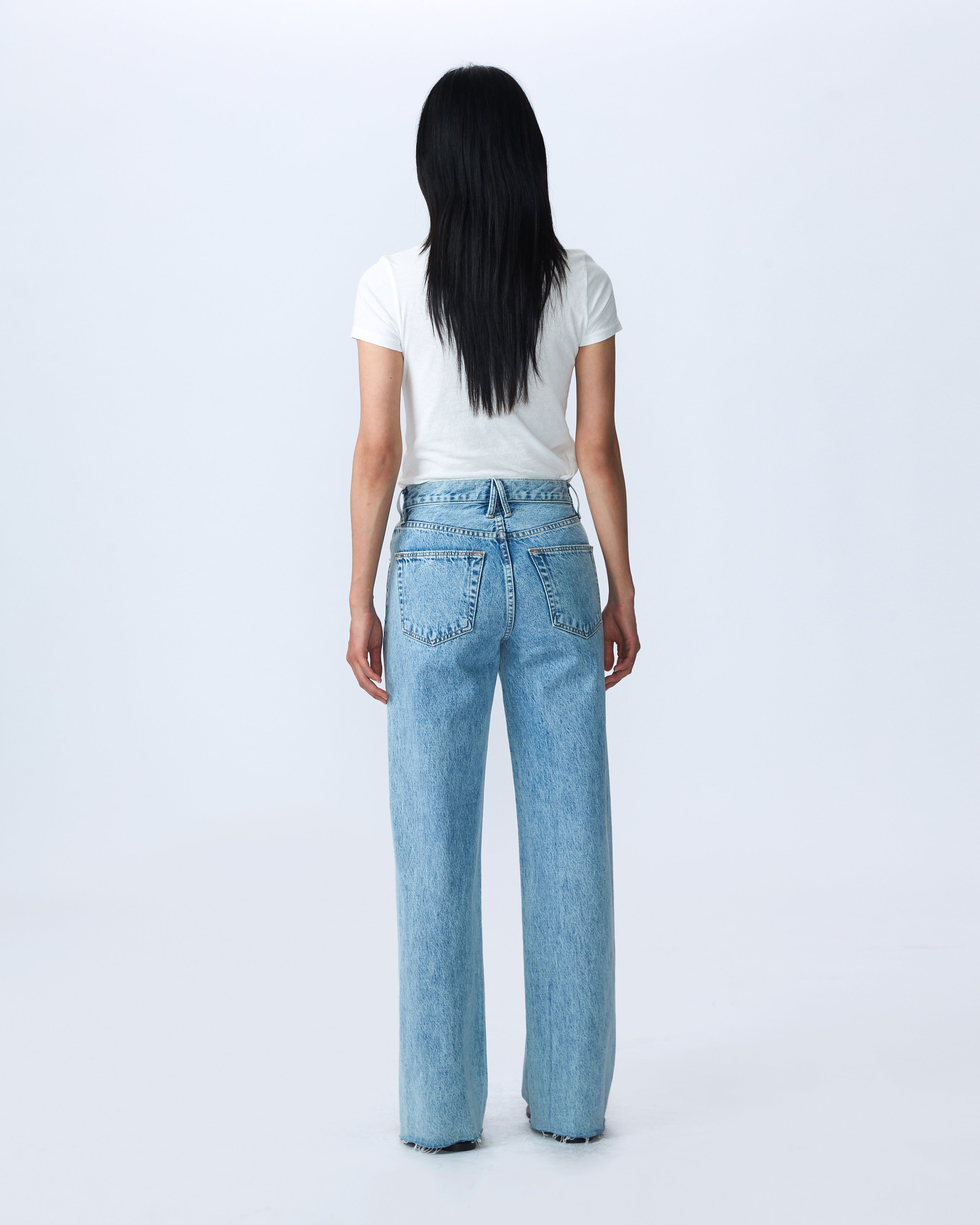 Grace is a signature style designed to elongate the leg with a high-rise waist and a playful wide-leg silhouette.