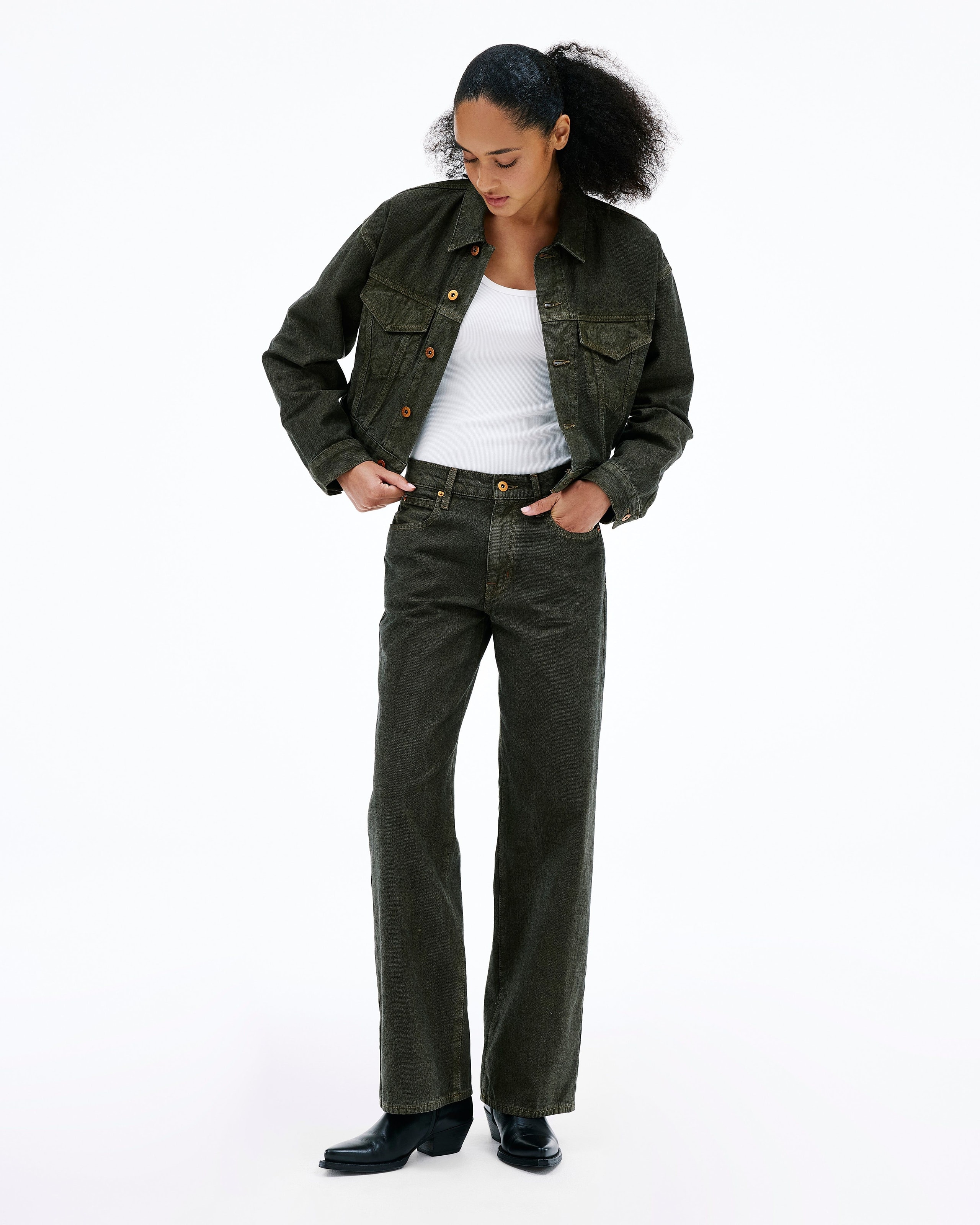 Blackwood Forest is crafted from 100% organic cotton, denim-dyed black and finished with a deep green resin treatment, creating a distinctive and elevated wash.