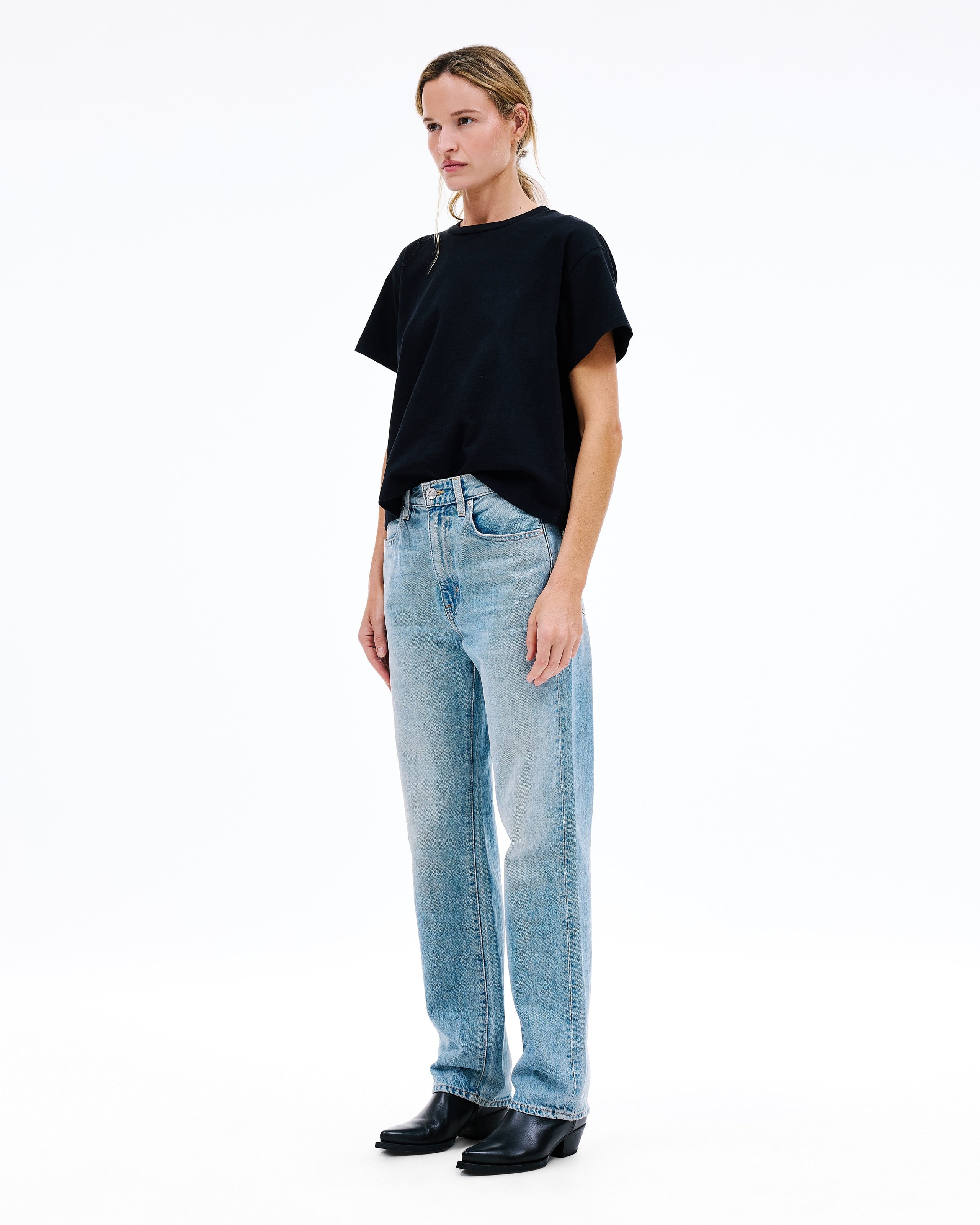 This signature style is designed to fit and flatter the feminine form, visually elongating the leg with a straight leg silhouette and high rise.