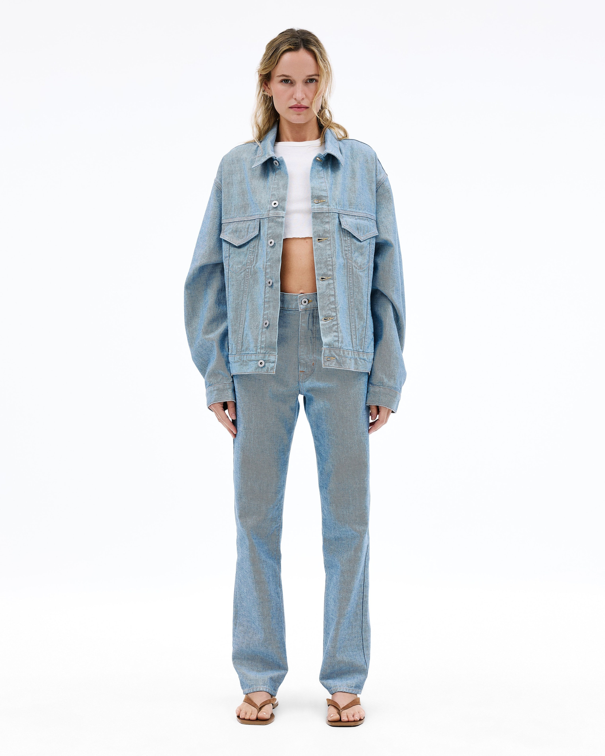 Sky Reverse is crafted from recycled cotton and showcases the reverse side of denim for a distinct finish, complemented by white hardware for a clean, modern look.