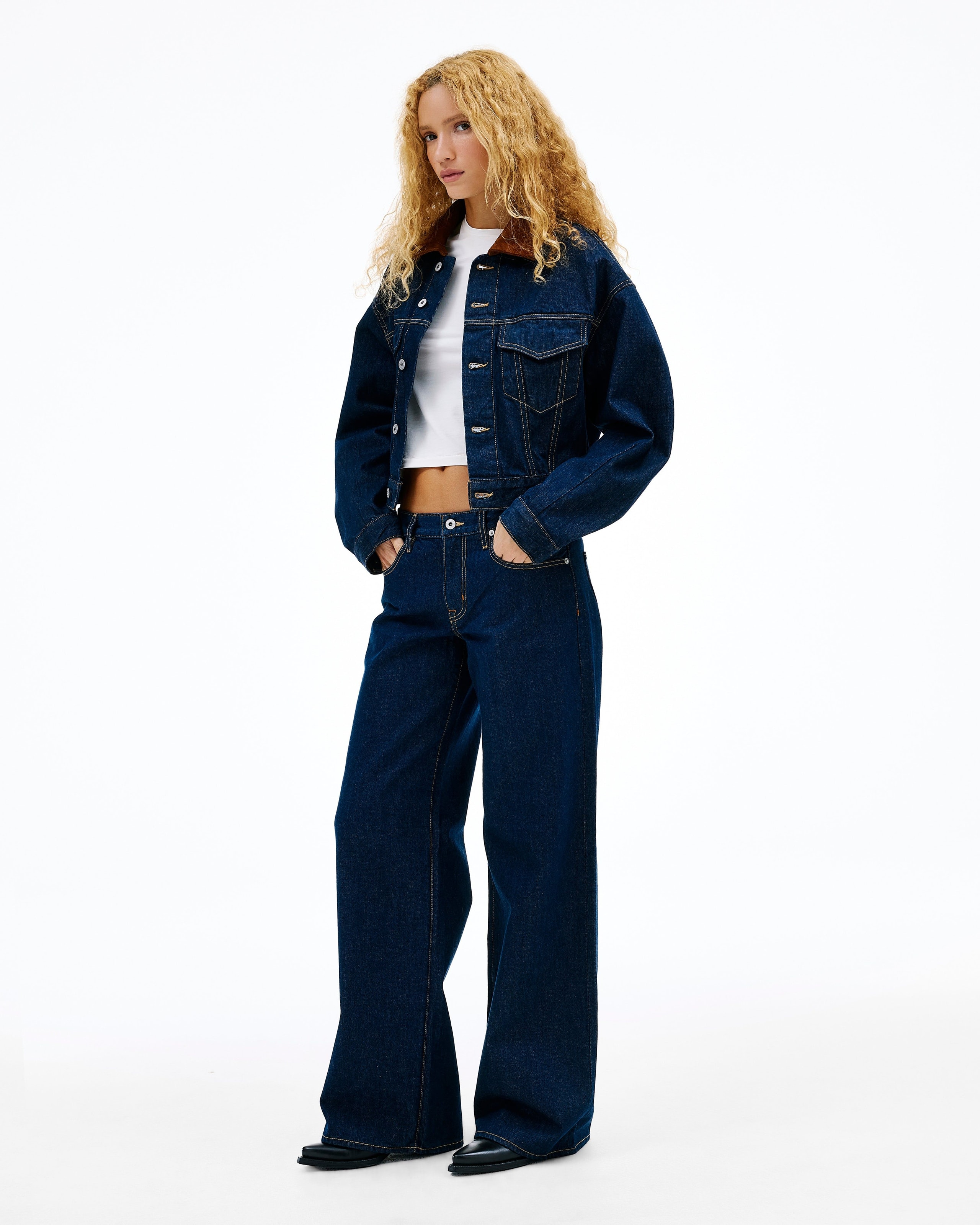 Indigo Rinse is crafted from 100% Regenerative Cotton and designed without resin, giving it a softer hand feel while maintaining the crisp, refined appearance of raw denim.